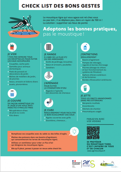 Ci-dessous les bonnes pratiques pour limiter la prolifération des moustiques tigres.
