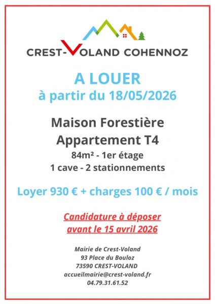 La commune de Crest-Voland propose à la location un appartement de type T4 situé au 1er étage de la Maison Forestière.